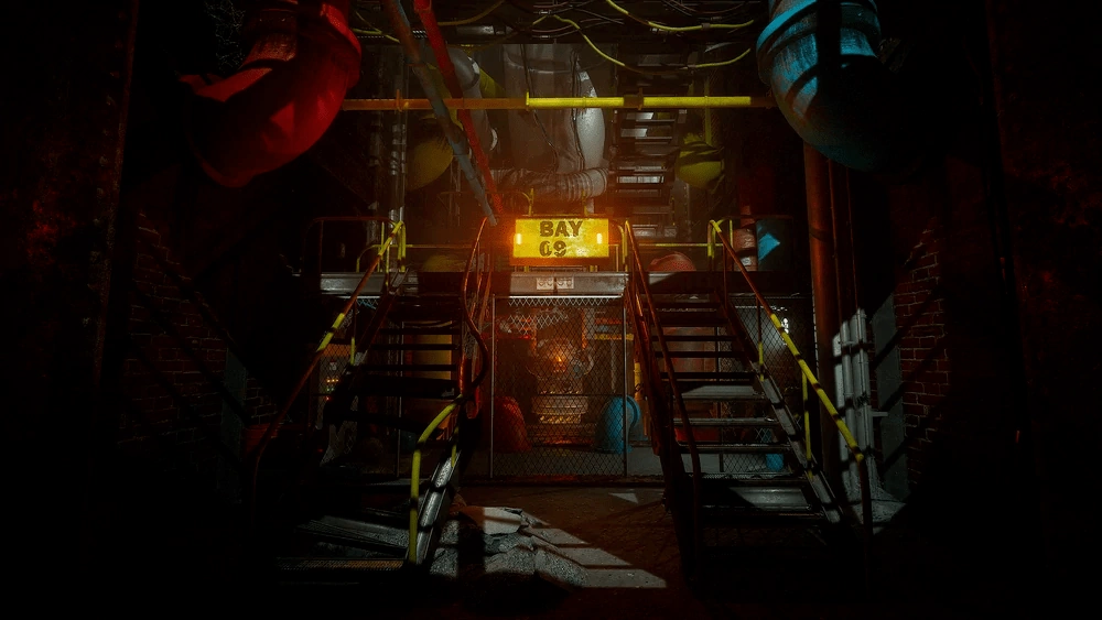 Un área oxidada llena de cableado mecánico y tuberías. Tomamos esta ruta para volver a la Estación de Juegos para salvar a Poppy | Cinta VHS Gris |