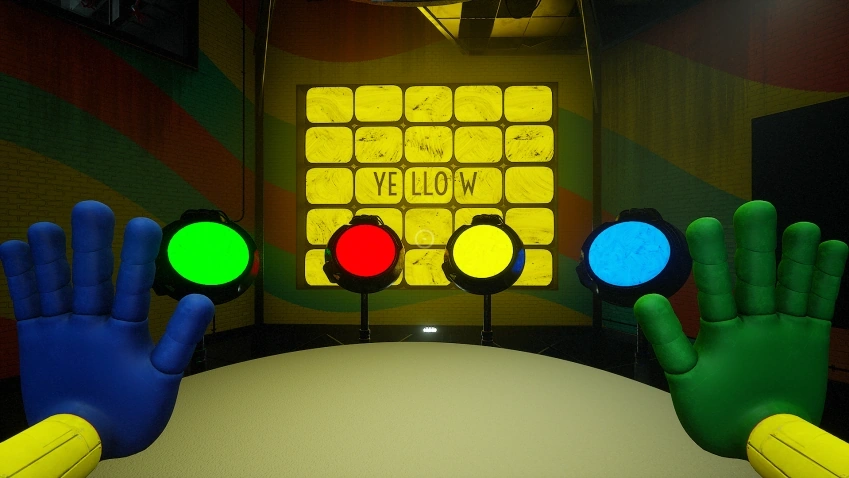 Delante y detrás del jugador hay botones y dos pantallas. Encima de la plataforma, hay una plataforma de observación, desde la cual Mommy Long Legs habla con el jugador. La pantalla muestra un color y su nombre, o un símbolo, y hay botones alrededor de la plataforma inferior que aumentan en número a medida que avanzan las rondas.